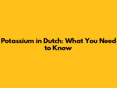 Potassium In Dutch: What You Need To Know