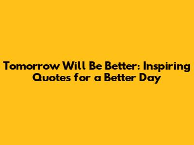 Tomorrow Will Be Better: Inspiring Quotes For A Better Day